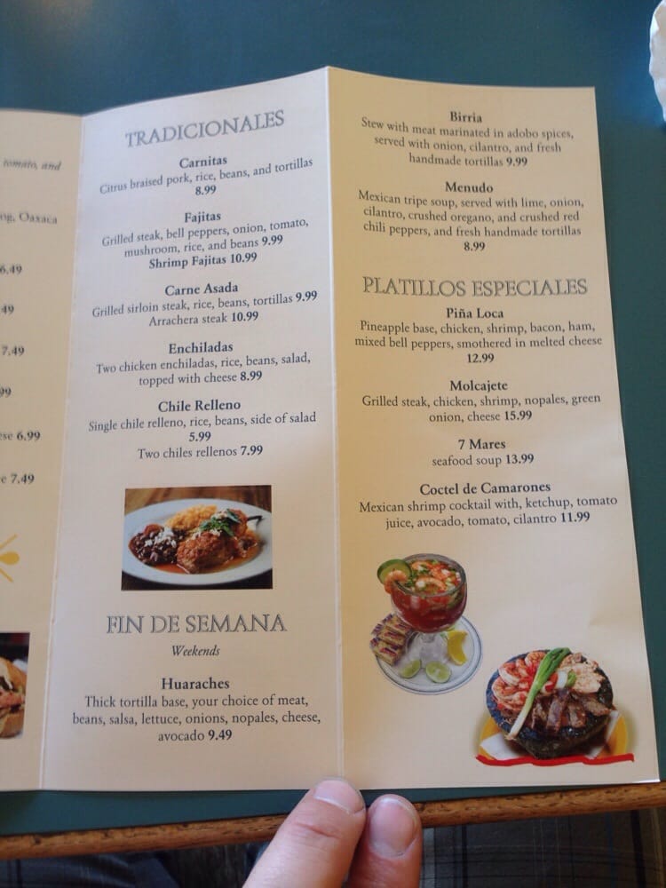 Thick Tortilla base, your choice of meat, beans, salad, lettuce, onions, no pales, cheese, avocado